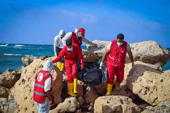 The Libyan Red Crescent branch in Sabratha, about 76 kilometres west of Tripoli, led the overnight rescue and recovery operation after receiving an emergency alert late on Monday. The bodies were later found washed ashore near Surman Port, a few kilometres along the coast.
